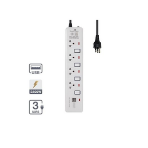 รางปลั๊กไฟ 4 ช่อง 4 สวิตช์ พร้อมช่อง USB 2.1A รุ่น EI-104USB 3M. สายไฟยาว 3 เมตร สีขาว - เทา