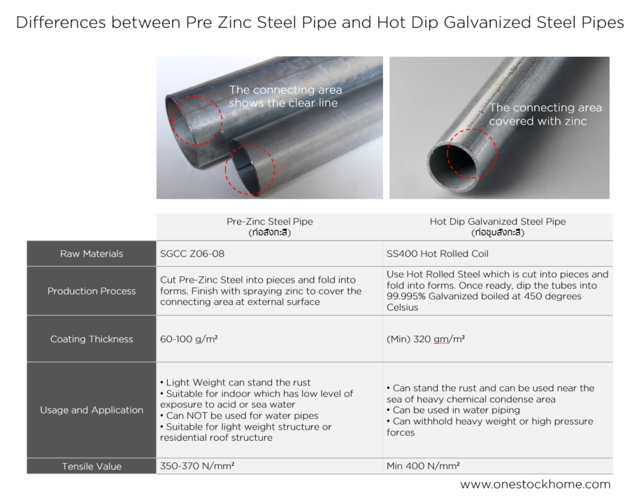 There are key differences between Pre Zinc (GI) pipes and Hot Dip Galvanized Pipes, and here are the summary of the key difference: