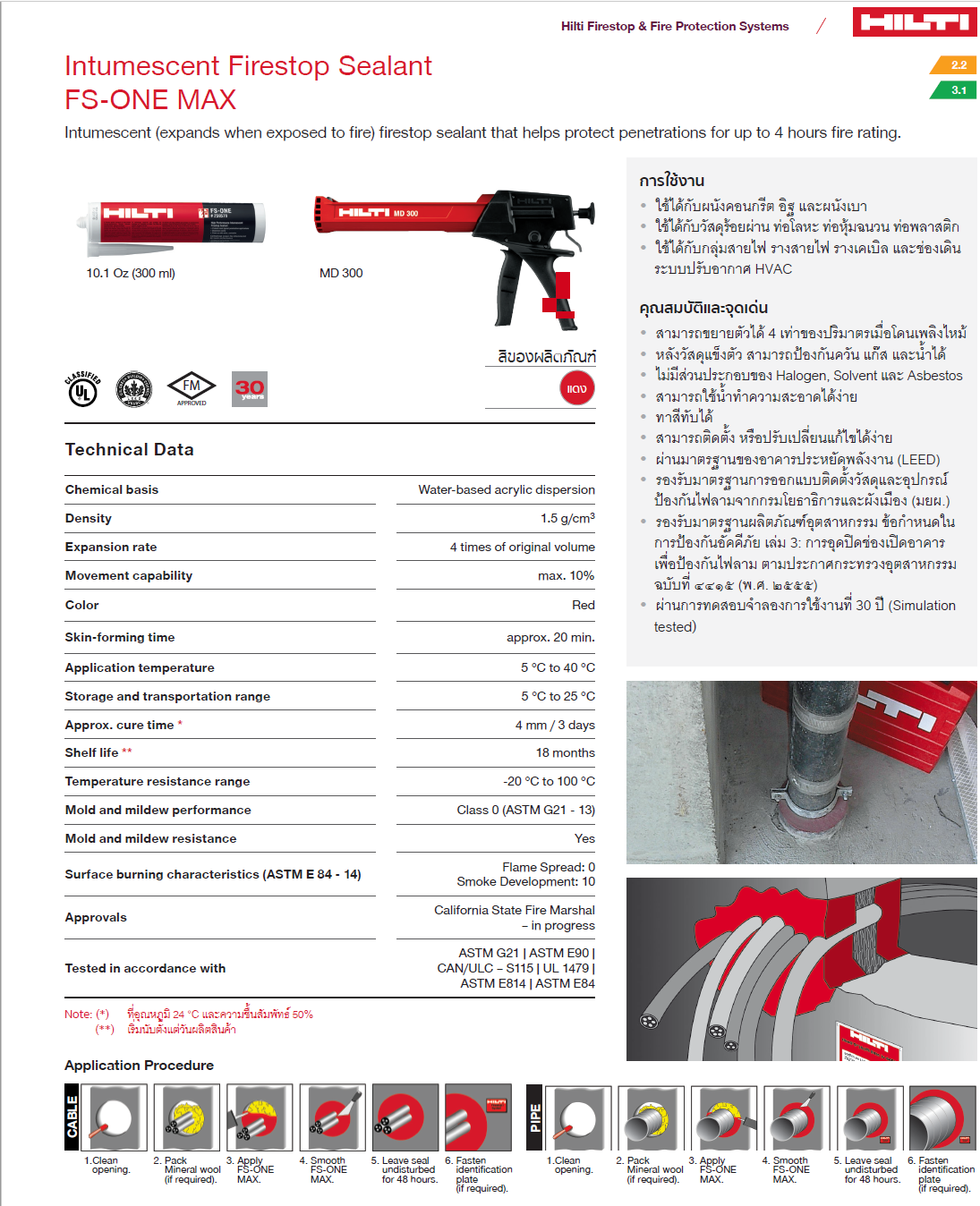 - สำหรับงานอุดปิดท่อลอดผ่านวัสดุฐานหลากหลายประเภทได้อย่างมีประสิทธิภาพ