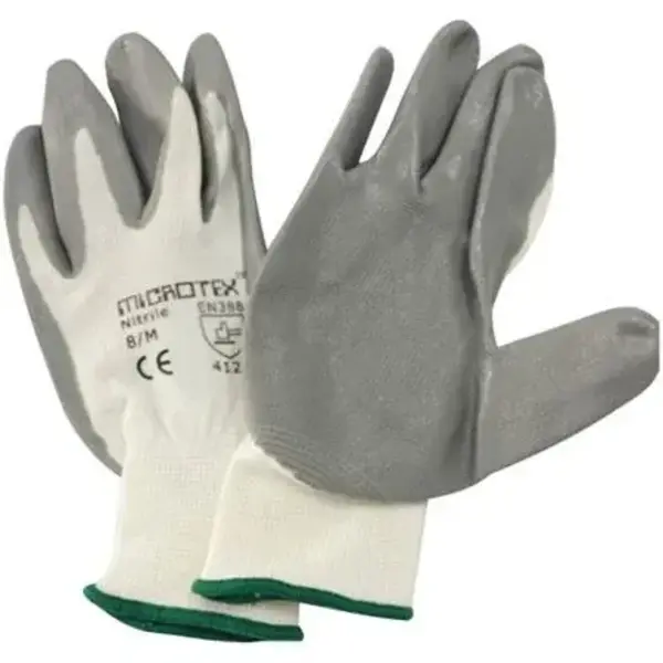 MICROTEX white nitrile-coated knitted gloves.