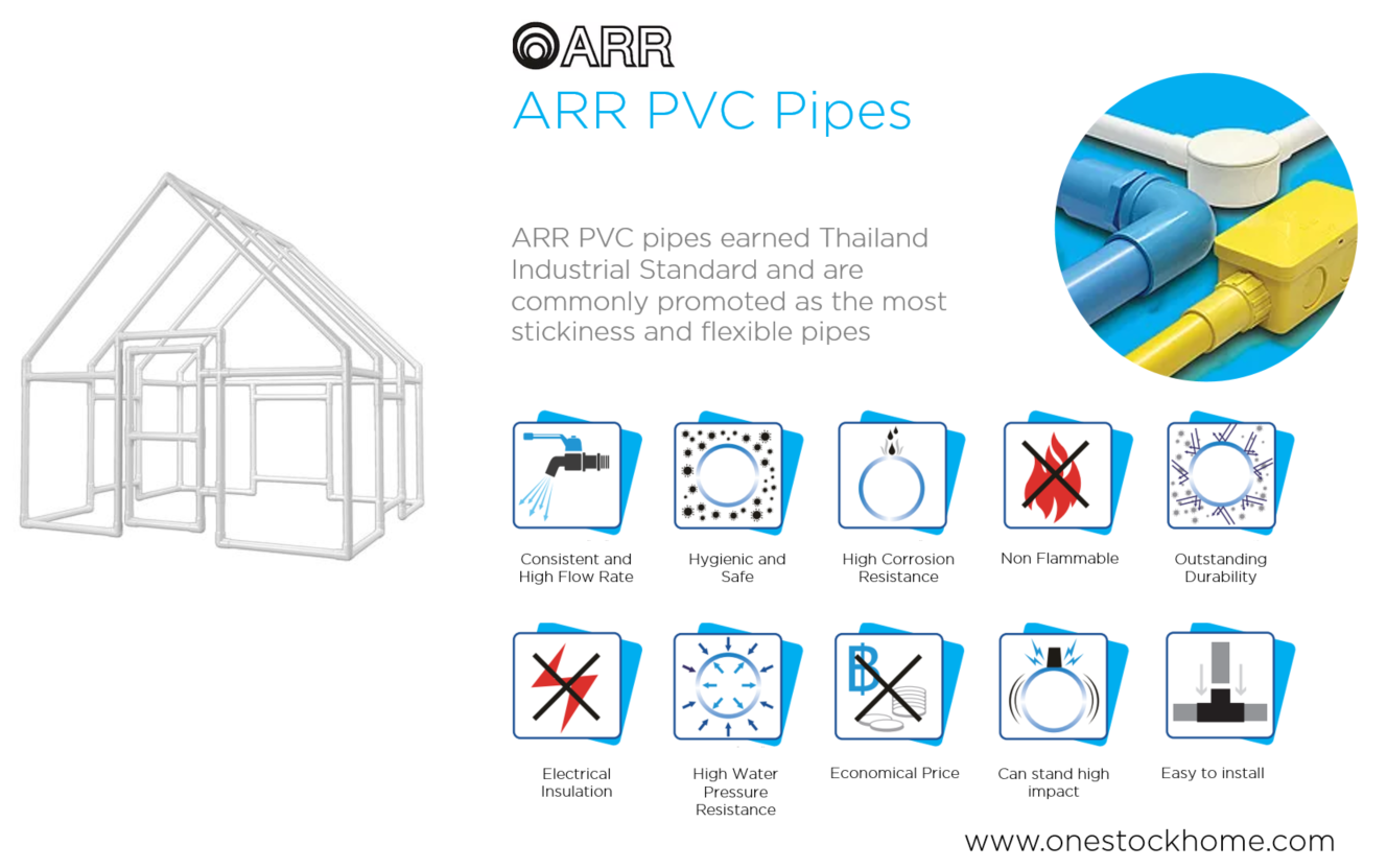 ARR PVC pipes earned Thailand Industrial Standard and are commonly promoted as the most stickiness and flexible pipes