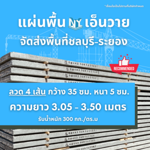 แผ่นพื้นตราเอ็นวาย (NY) เป็นแผ่นคอนกรีตอัดแรงชนิดท้องเรียบรูปหน้าตัดจะเหมือนกับแผ่นกระดาน สามารถวางชิดกันตลอดด้านท้องจะเรียบ ไม่จำเป็นต้องฉาบปูน และเมื่อเทคอนกรีตทับหน้าแล้ว จะเป็นเนื้อเดียวกับแผ่นพื้นคอนกรีตสำเร็จรูป แผ่นพื้นตราเอ็นวาย (NY)...