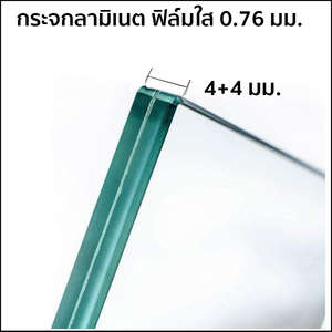 กระจกลามิเนต สีใส CL+CL 4+4 มม. ฟิล์มใส PVB 0.76 มม.