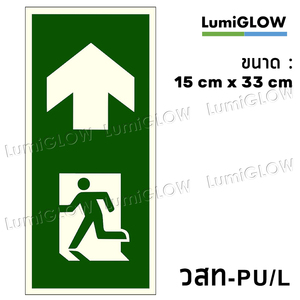 ป้ายทางออกหนีไฟเรืองแสง LumiGLOW มาตรฐาน วสท. 15 x 33 cm (เกรดญี่ปุ่น) เรืองแสงผ่านมาตรฐาน DIN-67510 Class C ป้ายเรืองแสง ลาย: วสท-PU/L