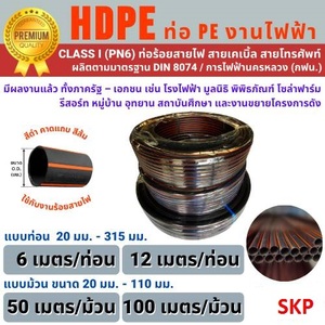 ท่อร้อยสายไฟ HDPE งานไฟฟ้า ขนาด OD: 20 - 200 มม. ไซส์ อุปกรณ์ไฟฟ้า