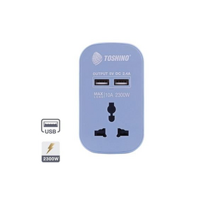ปลั๊กแปลงขาแบน พร้อม USB 2.4A รุ่น PU-10AB สีฟ้า