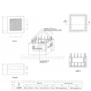 บ่อพักสายไฟคอนกรีต 1 ทาง ขนาดภายใน 60x60ซม. ขนาดภายนอก 80x80ซม. หนา 10ซม. + พร้อมฝา