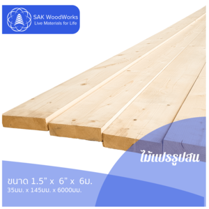 ไม้แปรรูปสน รัสเซีย 1.5 นิ้ว × 8 นิ้ว (35 มม. × 195 มม.) SAK WoodWorks ขนาด 6 เมตร
