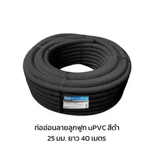 ท่ออ่อนลูกฟูก ร้อยสายไฟ สายโทรศัพท์ uPVC สีดำ 25 มม. ยาว 40 เมตร NNBB25