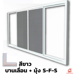 หน้าต่างกระจก UPVC Polywood บานเลื่อน+มุ้ง S-F-S สีขาว