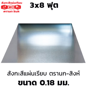 สังกะสีแผ่นเรียบ เหล็กแผ่นชุบสังกะสี (SGCC) ตรานก-สิงห์ 0.18 มม. 3x8 ฟุต