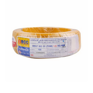 สายไฟ THW 450/750V 1x1.5 ตร.มม. สีเหลือง BCC 100 เมตร