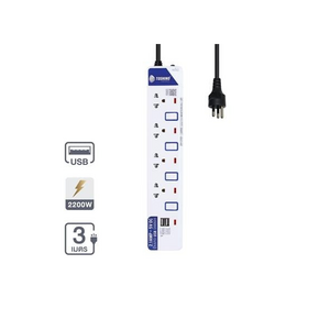 รางปลั๊กไฟ 4 ช่อง + USB2.1A 4สวิทซ์ รุ่น ET-914USB ขนาด 3 x 0.75 ซม. 3 เมตร ขาว