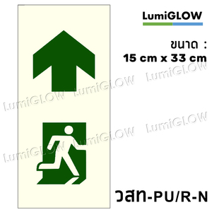 ป้ายทางออกหนีไฟเรืองแสง LumiGLOW มาตรฐาน วสท. 15 x 33 cm (เกรดญี่ปุ่น) เรืองแสงผ่านมาตรฐาน DIN-67510 Class C ป้ายเรืองแสง ลาย: วสท-PU/R-N
