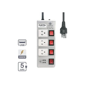 รางปลั๊กไฟ 3 ช่อง 4 สวิตช์ 2 USB 16A รุ่น HMDU4264 5MS สายไฟยาว 5 เมตร สีเงิน