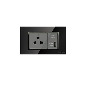 ชุดเต้ารับ 1 ช่อง และ USB 2.1A 1 ช่อง รุ่น Glass A85-C28E25-BK สีดำ - เงิน