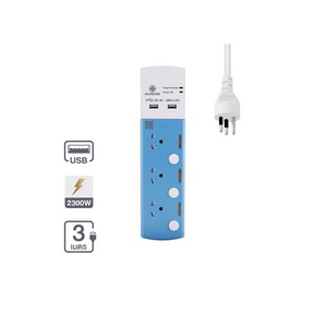 รางปลั๊กไฟ 3 ช่อง 3 สวิตช์ USB 3.4A รุ่น TSP-3T ขนาด 3 เมตร สีฟ้า