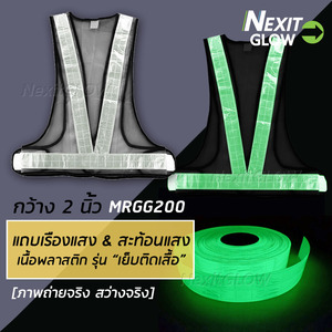 [2 In 1] แถบเรืองแสง-สะท้อนแสง รุ่นเย็บติดเสื้อ NexitGLOW แถบสะท้อนแสงเดินป่า แถบเรืองแสงเซฟตี้ Safety กว้าง 25 มม. (1 นิ้ว) เนื้อพลาสติก (MRGG200) กว้าง 2 นิ้ว (50 มม.) x ยาว 20 เมตร