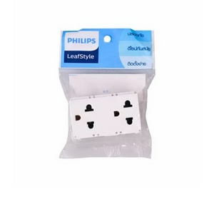 PHILIPS LEAF เต้ารับฝัง คู่ 3 ขากราวด์ สีขาว