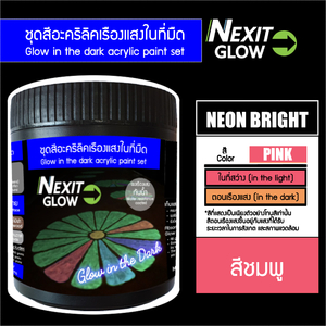 ชุดสีอะคริลิคเรืองแสงในที่มืด NexitGLOW ขนาด 480 กรัม สีทาบ้านเรืองแสง สีทาผนังเรืองแสง สีเรืองแสงทาปูน สี Neon ชมพู