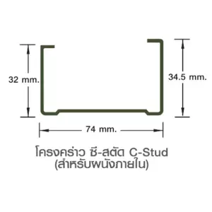 ซี สตัด 74 หนา 0.5 มม. กว้าง 74 มม. ความสูง 32/34.5 มม. ความยาวมาตรฐาน 3,000 มม. (เอสซีแอล 7650)