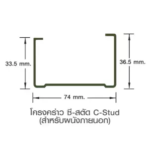 ซี สตัด 74 หนา 0.5 มม. กว้าง 74 มม. ความสูง 33.5/36.5 มม. ความยาวมาตรฐาน 3,000 มม. (เอสซีแอล 7670)