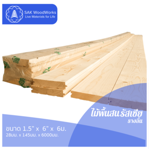 ไม้พื้นสนรางลิ้น 1.5 นิ้ว × 6 นิ้ว (28 มม. × 143 มม.) SAK WoodWorks ขนาด 6 เมตร