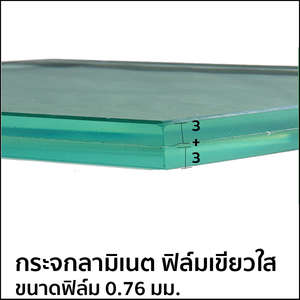กระจกลามิเนต ฟิล์มเขียวใส 0.76 3+3 มม.