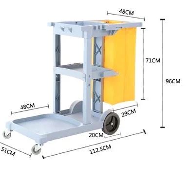 ตัวรถเข็นมีที่แขวนถุงผ้าโดยเฉพาะและฝาปิดสำหรับจัดเก็บอุปกรณ์หรือที่ทิ้งสิ่งสกปรก