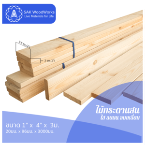 ไม้พื้นสนไส ลบมน ลบเหลี่ยม 1 นิ้ว × 4 นิ้ว (20 มม. × 96 มม.) SAK WoodWorks ขนาด 3 เมตร