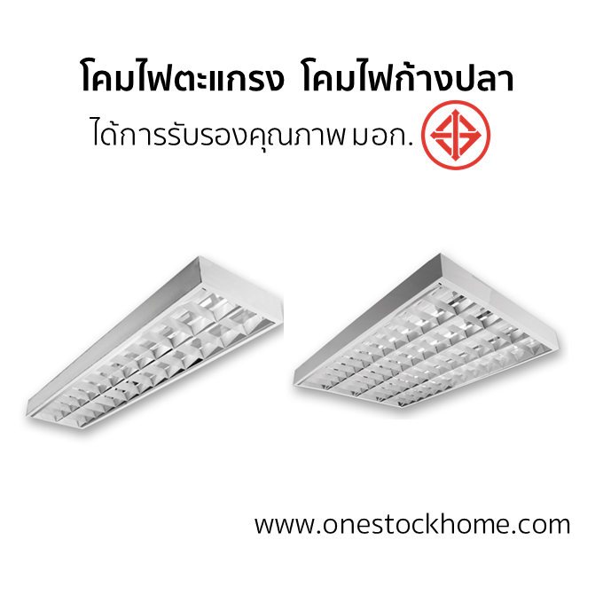 - โคมไฟก้างปลา โคมไฟตะแกรงฝังฝ้า 2 × 36 วัตต์