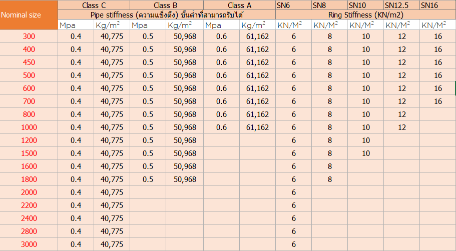 ตาราง ท่อลอนพอลิเอทิลินเสริมเหล็ก มีดังต่อไปนี้