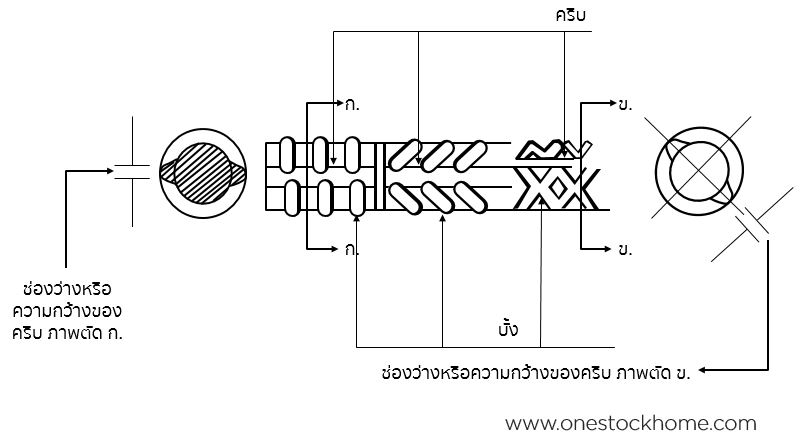 • เหล็กข้ออ้อย ต้องมีบั้งระยะเท่ากัน สม่ำเสมอตลอดทั้งเส้น