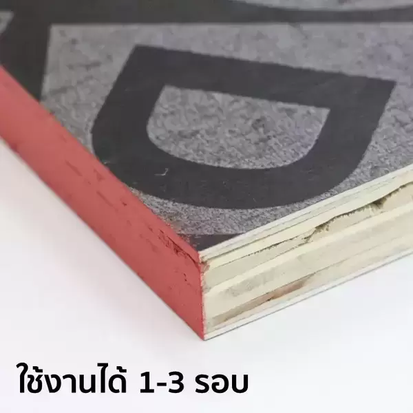 - ความหนา 15 มิลลิเมตร: เป็นความหนาที่เหมาะสมสำหรับงานที่ต้องการความแข็งแรงปานกลางถึงสูง เช่น การทำแบบหล่อคอนกรีต เสาค้ำยัน หรือพื้นชั่วคราว