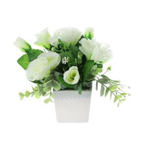 กระถางดอกกุหลาบประดิษฐ์ ฟ้าและดอกไม้ 20ซม. สีขาว