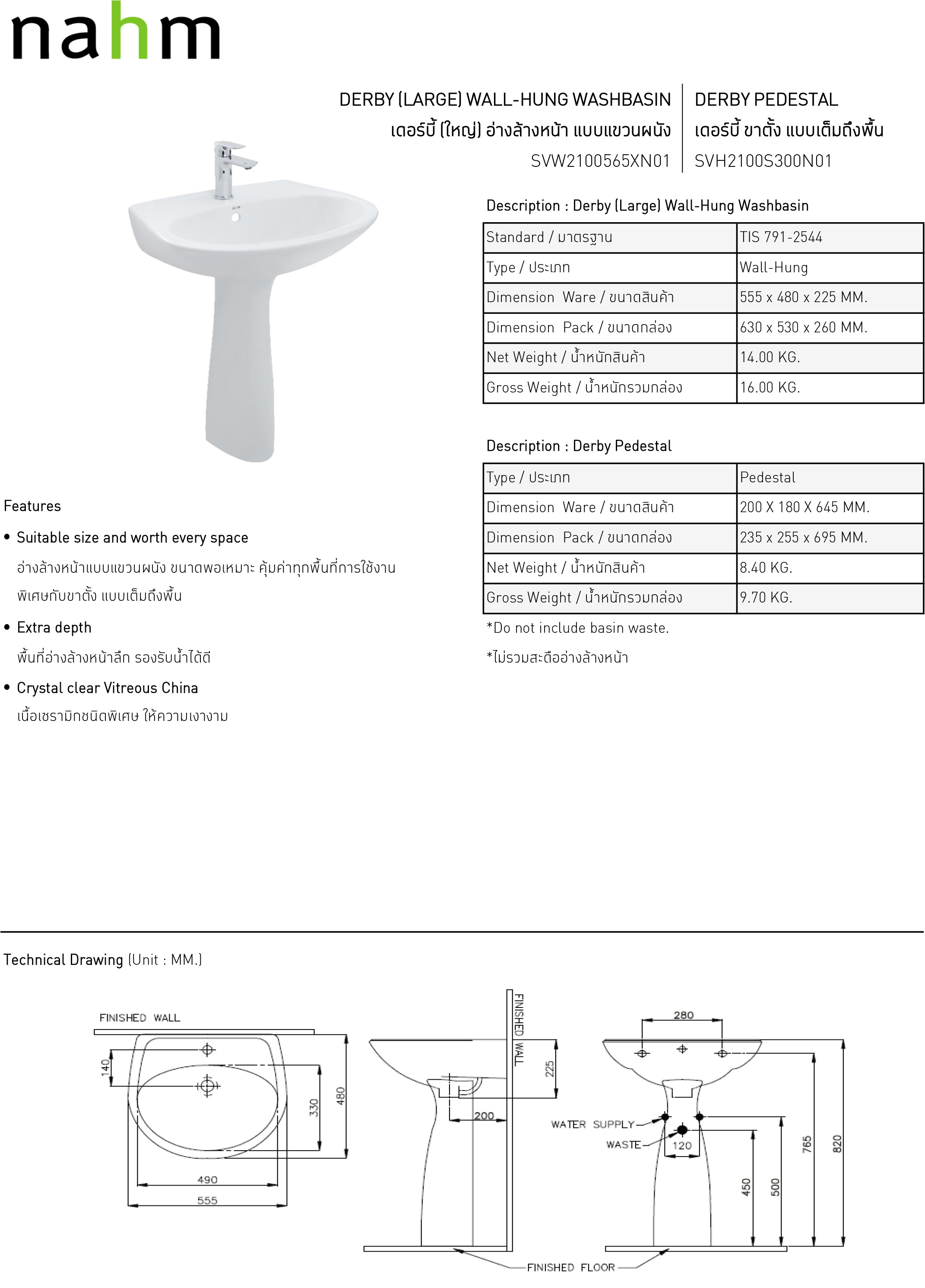 อ่างล้างหน้าขาตั้ง Nahm SVH2100S300N01 รุ่นเดอร์บี้