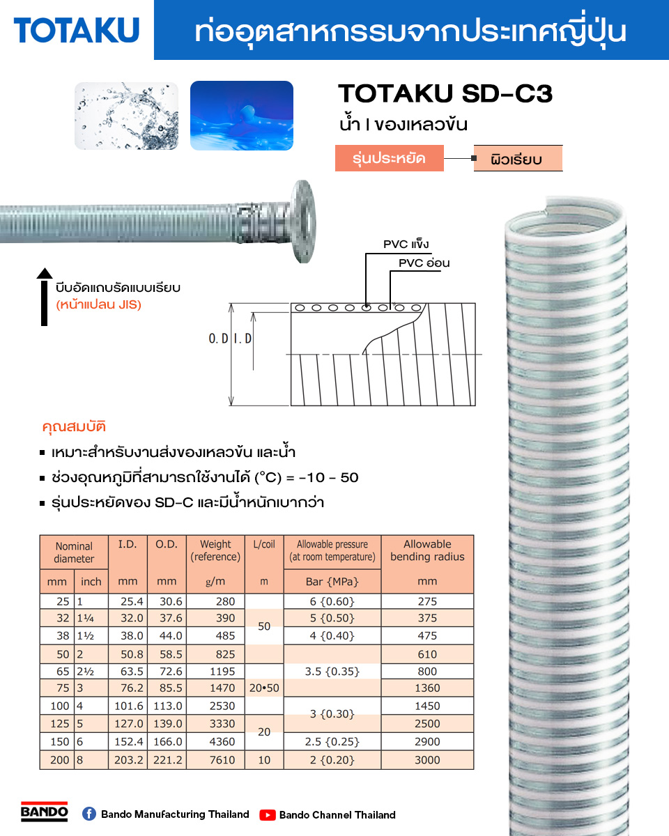 คุณภาพระดับอุตสาหกรรม เบากว่า โค้งงอได้มากกว่า ทนอุณหภูมิได้ -10-50 องศาเซลเซียส เหมาะสำหรับงานส่งน้ำ