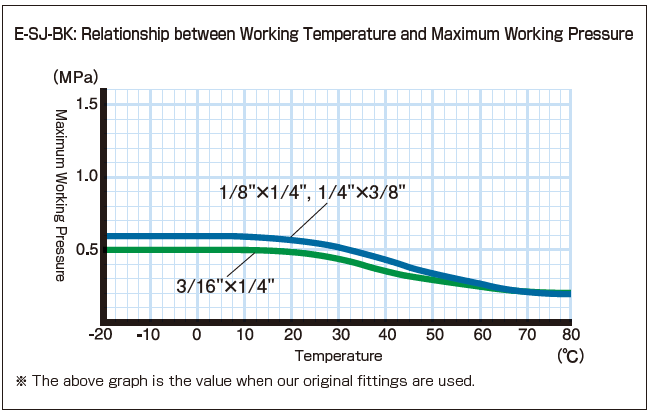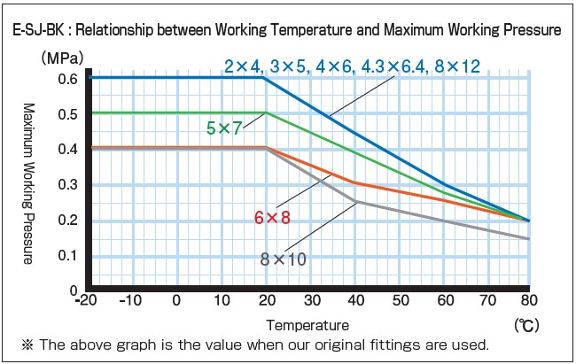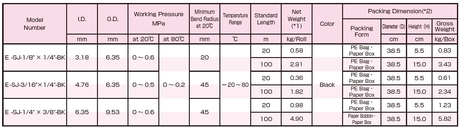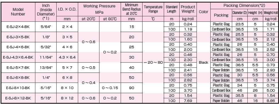 • Flexibility…Due to the laminated structure, compared with a single-layer fluorine tubing, E-SJ-BK is superior in flexibility. This improves your work efficiency.