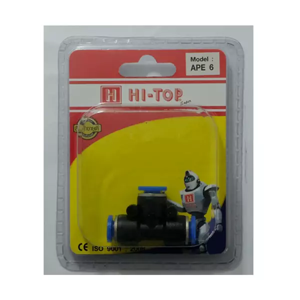 ข้อต่อเสียบสายลม 3 ทาง ตัวที HI-TOP APE-6 6 มม. สีดำ