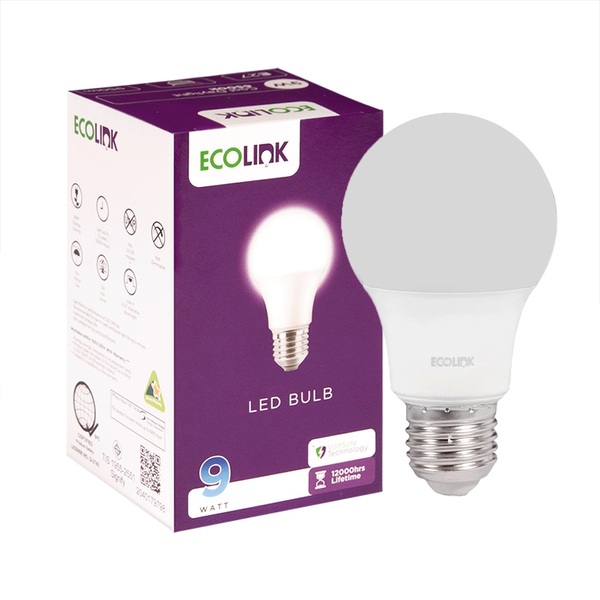 หลอดไฟ LED E27 9 วัตต์ เดย์ไลท์ ทรงลูกแพร์ ECOLINK A60