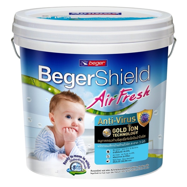 สีน้ำทาฝ้า BEGER AIR FRESH PG-1000 สีขาว ชนิดด้าน 9ลิตร
