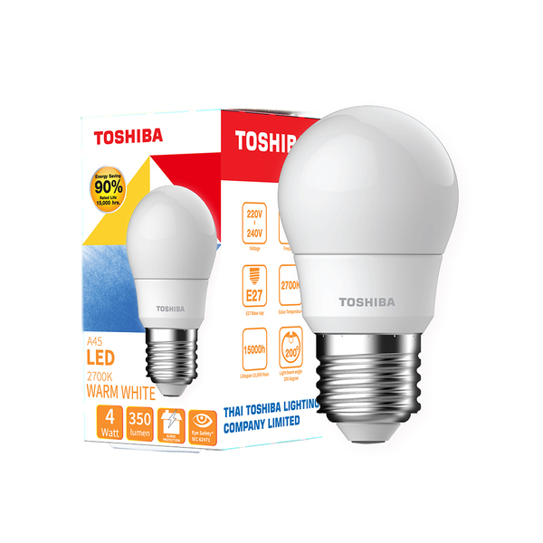 หลอดไฟ LED E27 4 วัตต์ วอร์มไวท์ ทรงลูกแพร์ TOSHIBA A45 G7