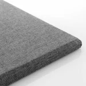 - วัสดุคุณภาพสูง: ผลิตจากแผ่นใยแก้ว (Glass Wool) ขึ้นรูปเป็นแผ่นแข็ง ปิดด้วยกลาสทิชชูและเคลือบขอบด้วยสารโพลีเมอร์พิเศษ หุ้มด้วยผ้าสีเทา Grey (Gra) ที่สวยงามและทนทาน