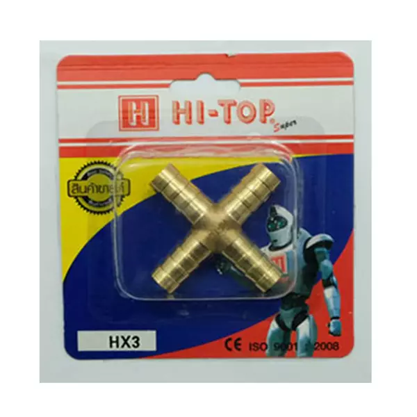 ข้อต่อหางปลา 4 ทาง HI-TOP HX 3 3 หุน (3/8 นิ้ว) สีทอง