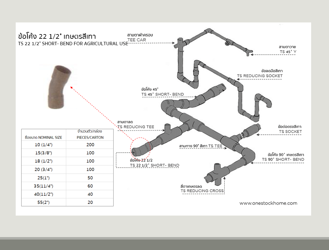 ข้อโค้ง 22.5 องศา PVC สีเทา 3 หุน ท่อน้ำไทย