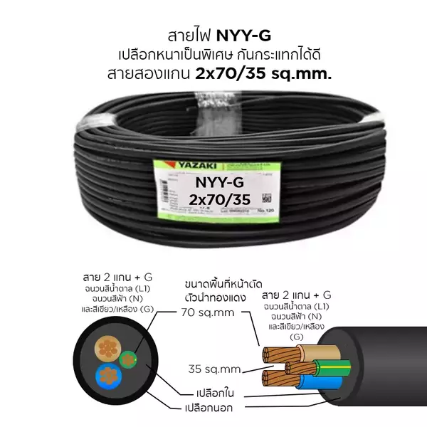 สายไฟ NYY-G 2x70/35 ตร.มม. YAZAKI
