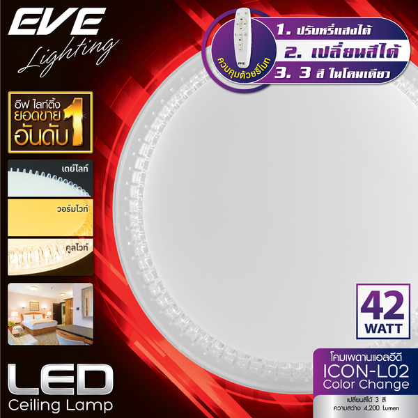 โคมไฟเพดาน LED EVE 570931 42 วัตต์ DAYLIGHT COOLWHITE WARMWHITE 20 นิ้ว สีขาว