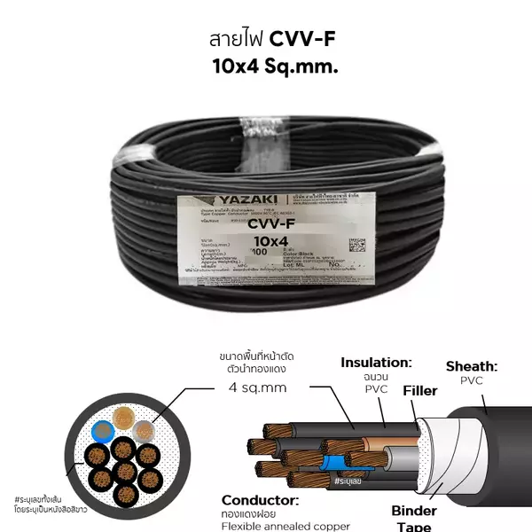 สายไฟ CVV-F 10x4 ตร.มม. YAZAKI