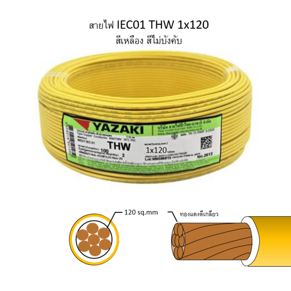 สายไฟ THW 120 ตร.มม. สีเหลือง YAZAKI