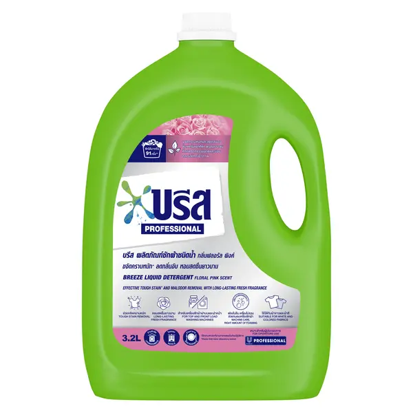 บรีสโปร น้ำยาซักผ้า สูตรฟองน้อย สีชมพู 3.2 ลิตร